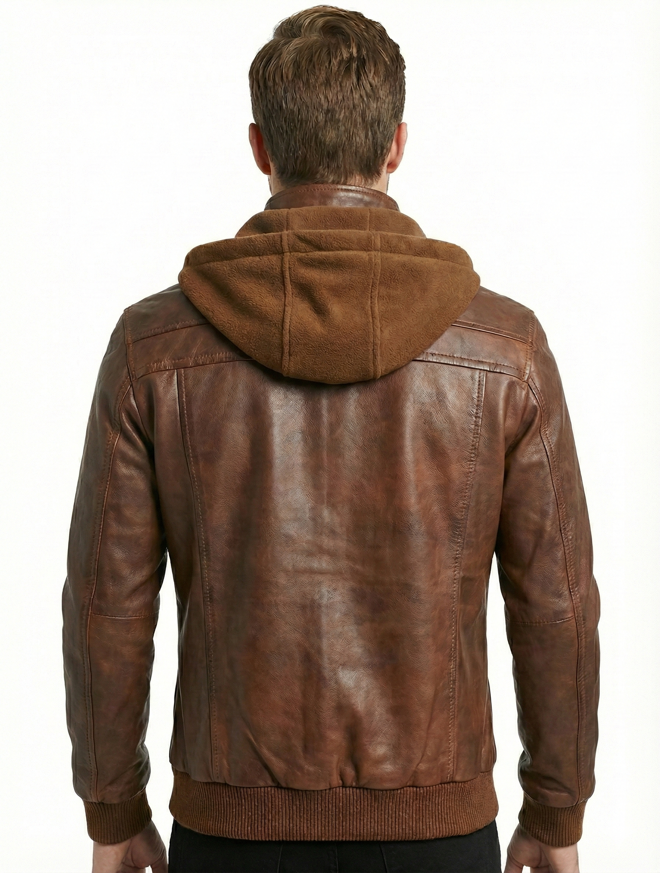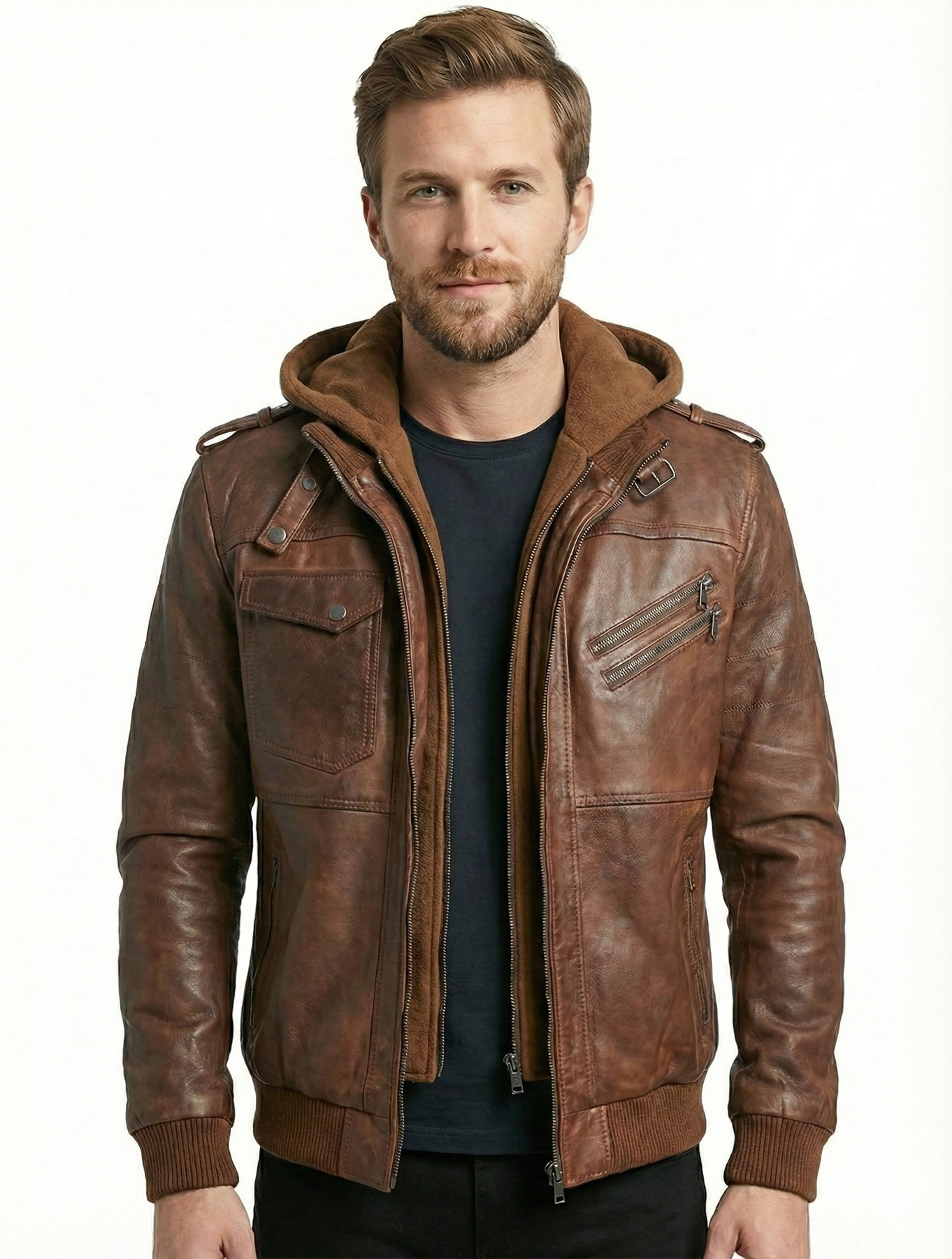 Biker Hooded Bomber Distress Leather Jacket