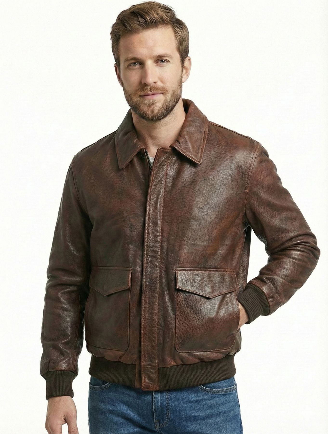Men's Aviator A-2 Distress Brown Real Leather Jacket